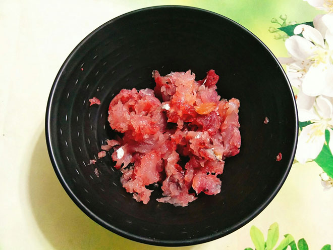 Cá thu sau khi được sơ chế sạch sẽ thì dùng dao cắt đôi con cá làm 2 miếng theo chiều dọc, lách bỏ phần xương chính giữa con cá sau đó dùng thìa cạo lấy phần thịt cá cho vào tô.
