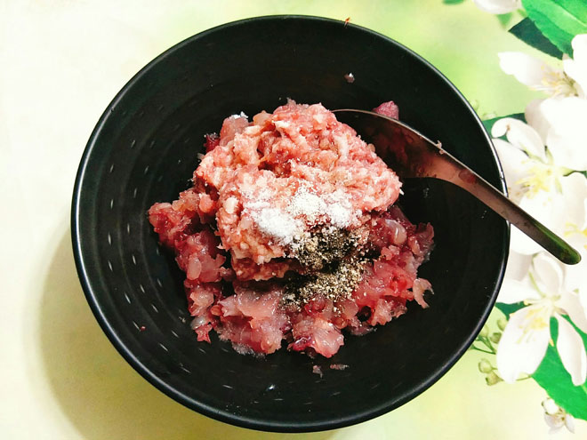Tiếp theo bạn cho thịt xay nhỏ vào cùng cá, nêm chút nước mắm, tiêu, hạt nêm, đường và trộn đều rồi ướp cá 15 phút cho ngấm gia vị
