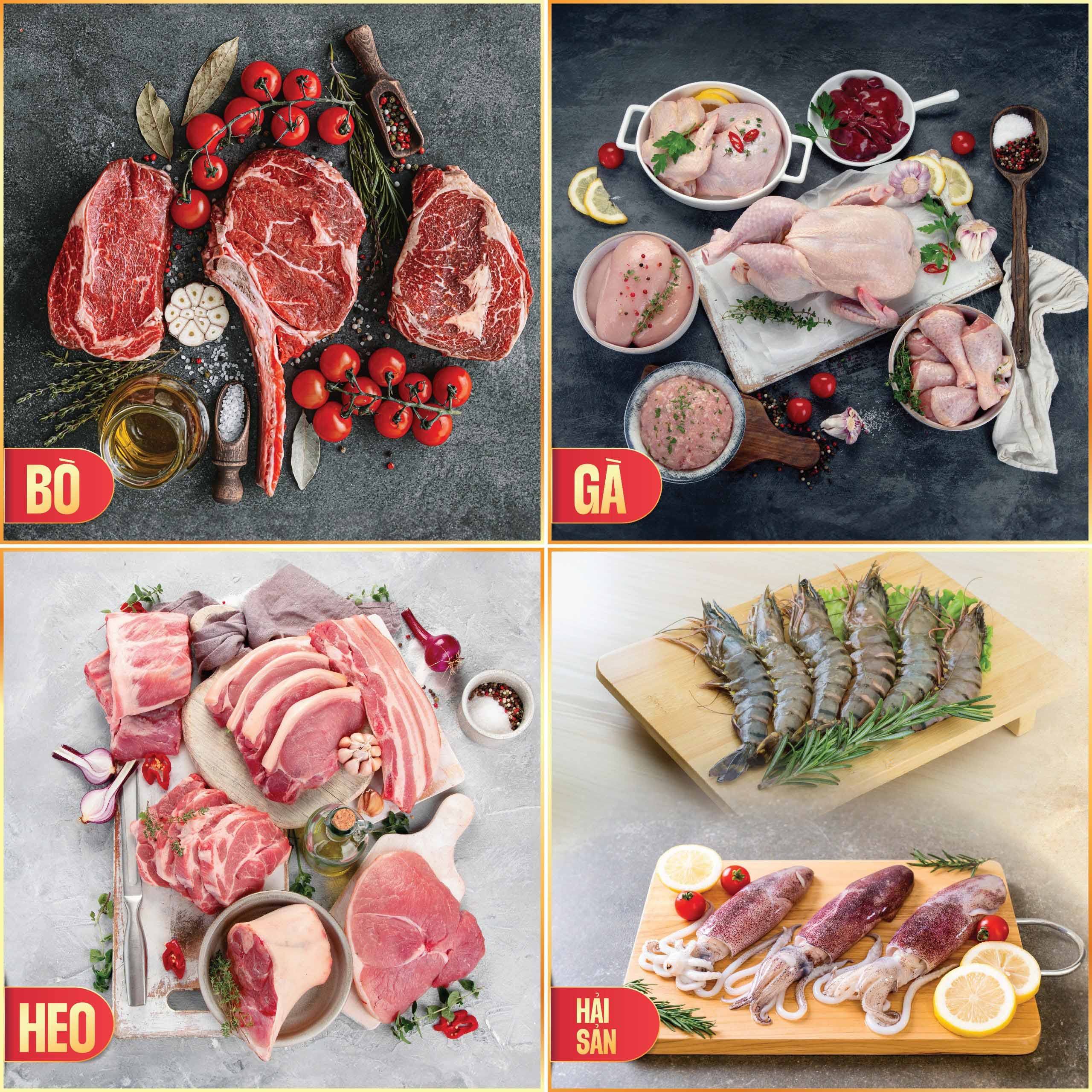 Về thịt heo, chúng tôi nhập khẩu trực tiếp từ Tây Ban Nha, Hà Lan, Đức,… với các mặt hàng như ba chỉ heo, sườn cốt lết, sườn cánh buồm, khoanh giò, tim heo, chân giò nguyên chiếc, nạc vai,… Tất cả đều được tuyển chọn kỹ càng và cấp đông đạt chuẩn. Về thịt gà, Tứ Phương cung cấp gà nguyên con, cánh gà nguyên chiếc, cánh gà khúc giữa, đùi góc tư, đùi tỏi,… nhập khẩu từ Brazil, Ba Lan, Mỹ – đảm bảo thịt chắc, tươi, không hóa chất. Về thịt bò, chúng tôi phân phối các sản phẩm chủ lực như bắp hoa Allana, dẻ sườn, xương ống, nạc mông Alsami,… với đầy đủ giấy tờ và nguồn gốc rõ ràng. Ngoài ra, danh mục thủy hải sản đông lạnh của Tứ Phương cũng rất phong phú, bao gồm cá basa, cá nục, cá ngừ, tôm sú, tôm thẻ, mực trứng, mực ống Indo,… Tất cả đều được cấp đông sâu tại nguồn và vận chuyển bằng hệ thống lạnh chuyên dụng, đảm bảo giữ nguyên độ tươi ngon và dinh dưỡng.