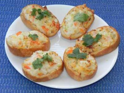 Vị ngon, giòn của bánh mì quyện với vị béo ngọt của tôm và vị béo của pho mai sẽ là món ăn ưa thích cho bạn những lúc rảnh rỗi. Món ăn được chế biến khá nhanh và nguyên liệu cũng dễ tìm.
