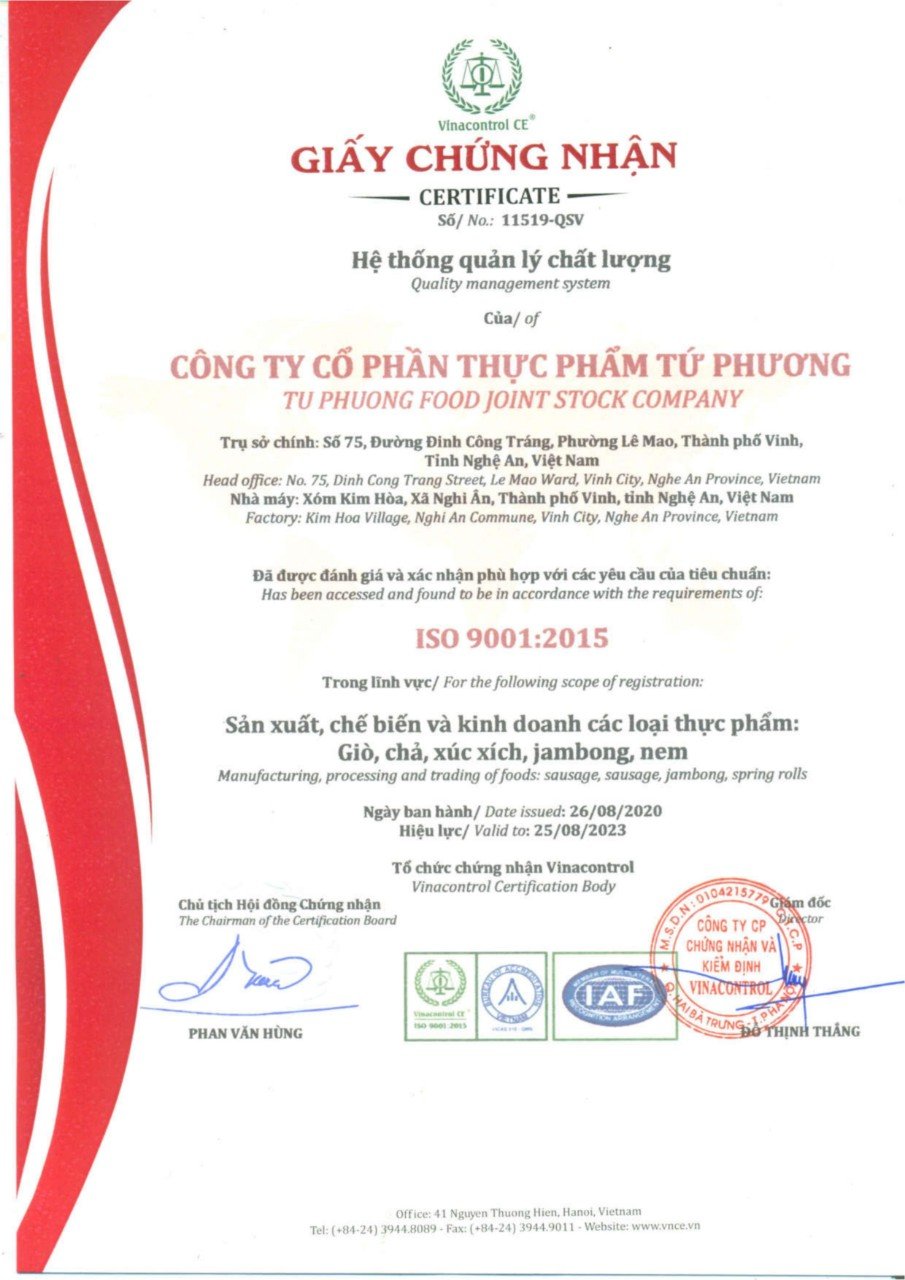 Cung cấp một số giấy chứng nhận về chất lượng sản phẩm, chất lượng vệ sinh an toàn thực phẩm cho bạn yên tâm sử dụng và buôn bán các sản phẩm Tứ Phương nhé.