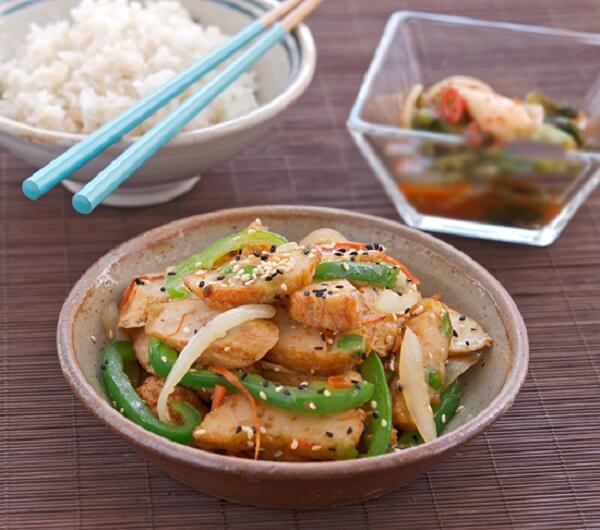 - Bước 4: Cho chả cá vào xào chung với rau củ khoảng 2 – 3 phút, nêm một ít bột ngọt, hạt nêm, muối cho vừa ăn.