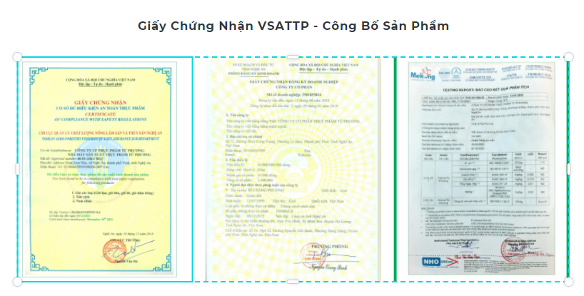 Tứ Phương đầy đủ giấy tờ công bố sản phẩm, giấy chứng nhận VSATTP.