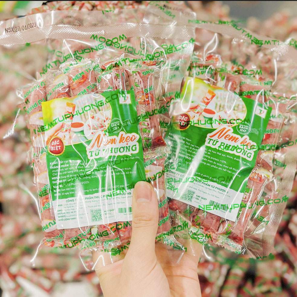 - Đóng gói tiện lợi: Với trọng lượng 150g, nem kẹo Tứ Phương rất tiện lợi để sử dụng, mang đi làm hoặc đi chơi.