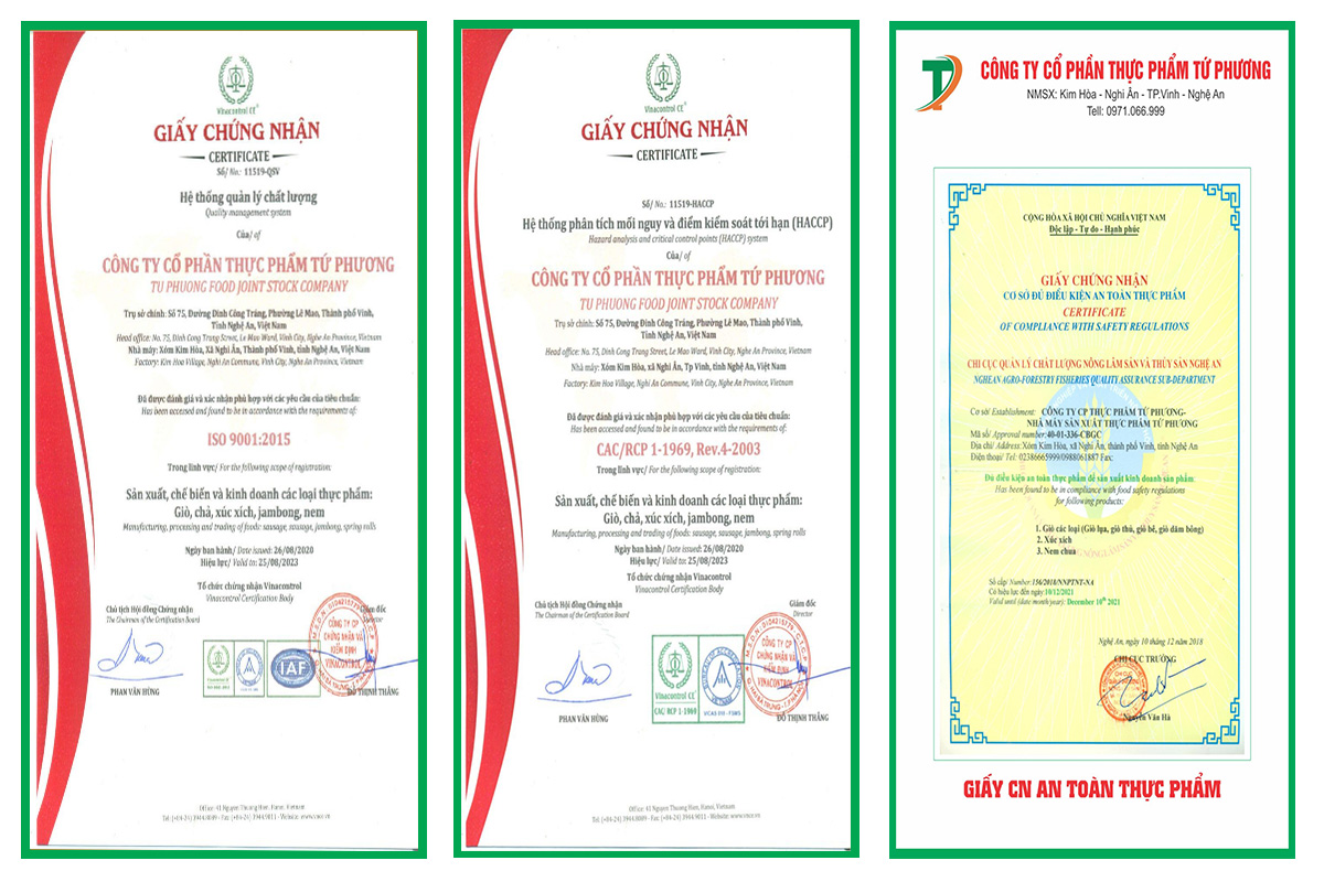 Sản Phẩm Của Tứ Phương Foods đạt các tiêu chuẩn ISO 9001:2015,HACCP